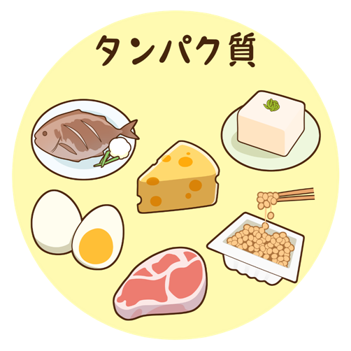 糖尿病のある高齢者の方には、「たんぱく質(お肉・魚・卵・大豆製品など)」をしっかり摂ることをおすすめします。体重1kgあたり1〜1.2gが目安ですが、難しく考えず、毎食に主菜(たんぱく質のおかず)を入れるようにしましょう。特に朝食はパンだけで済ませず、卵や豆腐、ヨーグルトなどをプラスするのがポイントです。